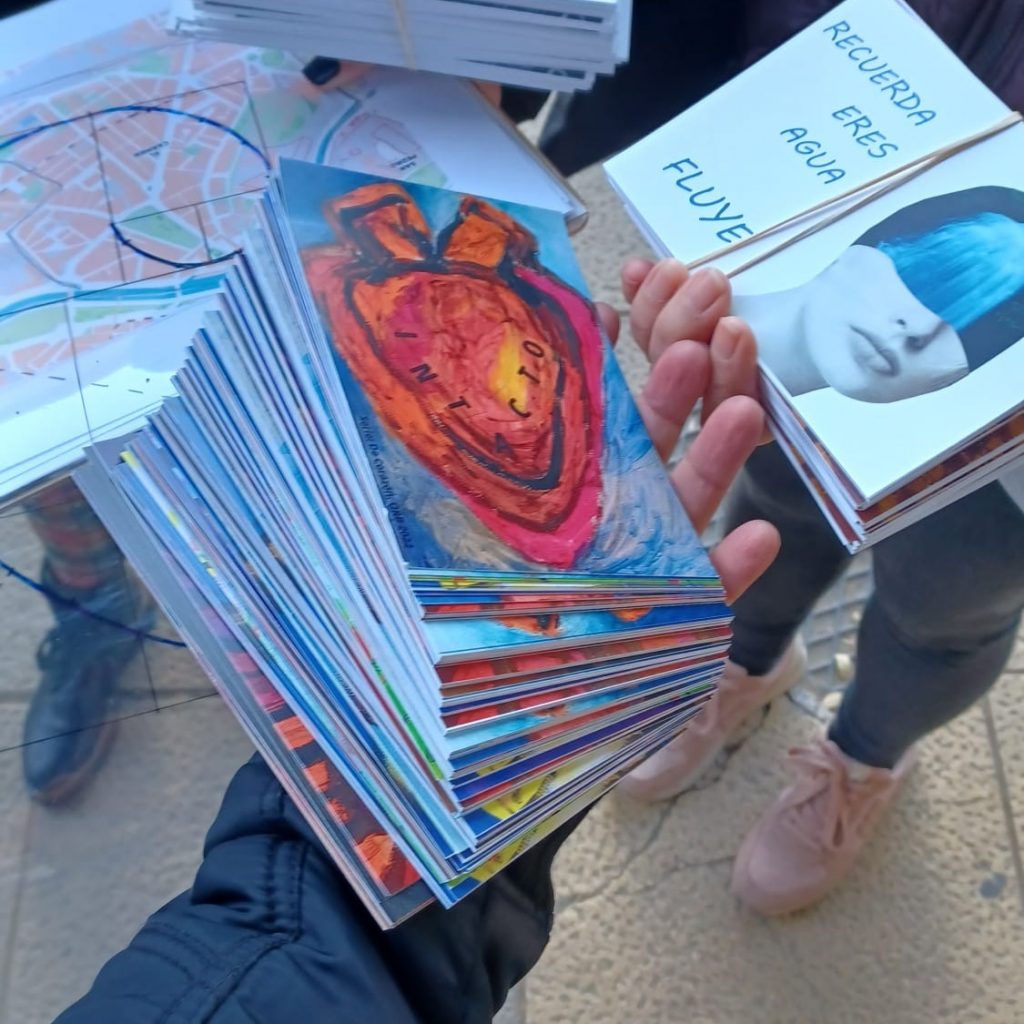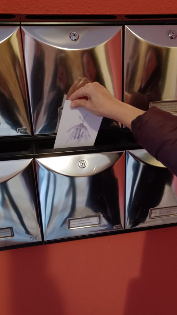 La propuesta expositiva consiste en una intervención artística ciudadana. Se han ido depositando las postales en buzones de personas anónimas siguiendo el patrón de la espiral de Fibonacci.